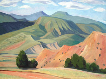 Doris McCarthy, The Valley of Abiqui (1998), oil on panel, 12” X 16”