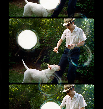 “Sara Angelucci’s Regular 8 series returns film to its origin in the still image, while turning our attention to the post-war nuclear family of the 1950s. A period characterized by growing consumption, new mobility, and a large population aspiring to middle class success, it also witnessed the spread of eight millimeter or “Regular 8” home movies. Playing on the idiosyncratic interference caused by Kodak’s punch-hole tagging system—a series of numbers appearing across the end frames of each film—Angelucci makes poignant reference to the last moments of such films, where a series of white dots dances across the screen as the action winds to a close. Preserved, yet already in the process of dissolution, as evidenced by the invading punch holes, these images describe a moment of in-between. Existing somewhere between film theorist Andre Bazin’s characterization of photography and film, these photographic moments are suspended like “insects in amber” while shifting perpetually between frames as “change mummified.”