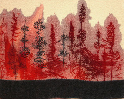Red Glow 2009 ink and thread on reclaimed Hudson ’s Bay blanket, 24”x 30”