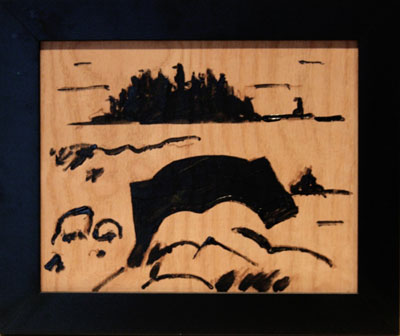 Rock Sea and Island, 2008, 8x10 inches, enamel on panel