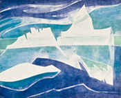 When Doris McCarthy donated her archives to the Doris McCarthy Gallery, University of Toronto Scarborough, (DMG), it was discovered that within this collection existed a group of collograph plates. McCarthy had cut, assembled and carved sheets of cardboard into relief plates, capturing these astonishing Arctic scenes after her first visit to the far north in 1972. The plates remained in excellent condition, and it was determined that the images were worthy of a second, and final, edition. So, with Doris’ enthusiastic approval, Open Studio Master Printer Jill Graham was approached to work with the plates, referring to the masters from the first edition prints made by Doris in the ‘70s, Graham spent many days experimenting and printing trial proofs until she was satisfied that she had ones that would meet with Doris’ approval. A proofing committee with an intimate knowledge of McCarthy’s work provided feedback at each stage of the process. This committee consisted of Lynne Wynick and David Tuck, representatives and gallerists to Doris since 1979; Stephen Smart, long-time collector and legal representative for the McCarthy Studio; and Ann MacDonald, Director/Curator of the DMG. Graham took the prints to Doris at Fool’s Paradise, McCarthy’s home. Doris gave her enthusiastic approval of the finished proofs and authorized the release of the editions.